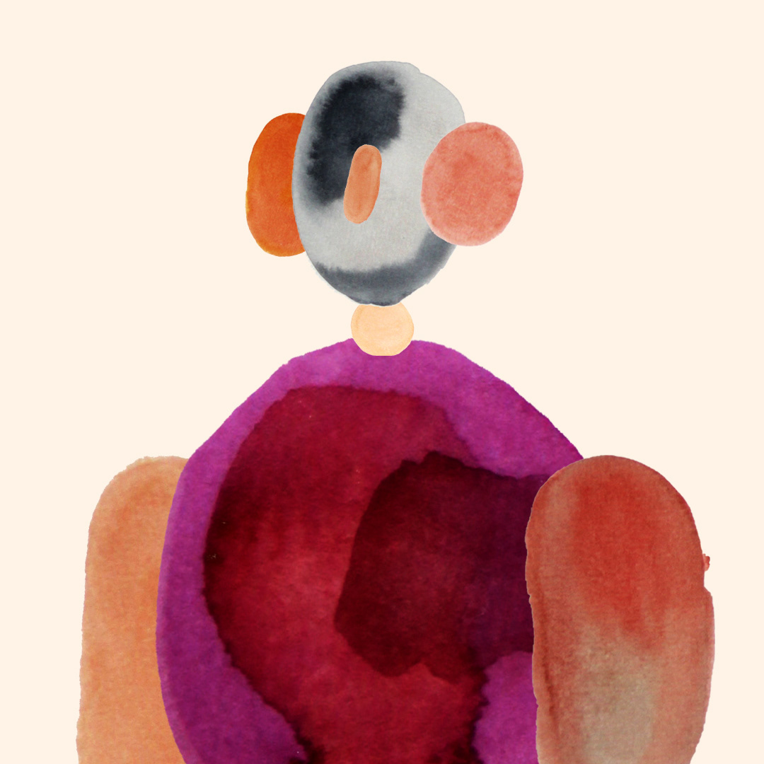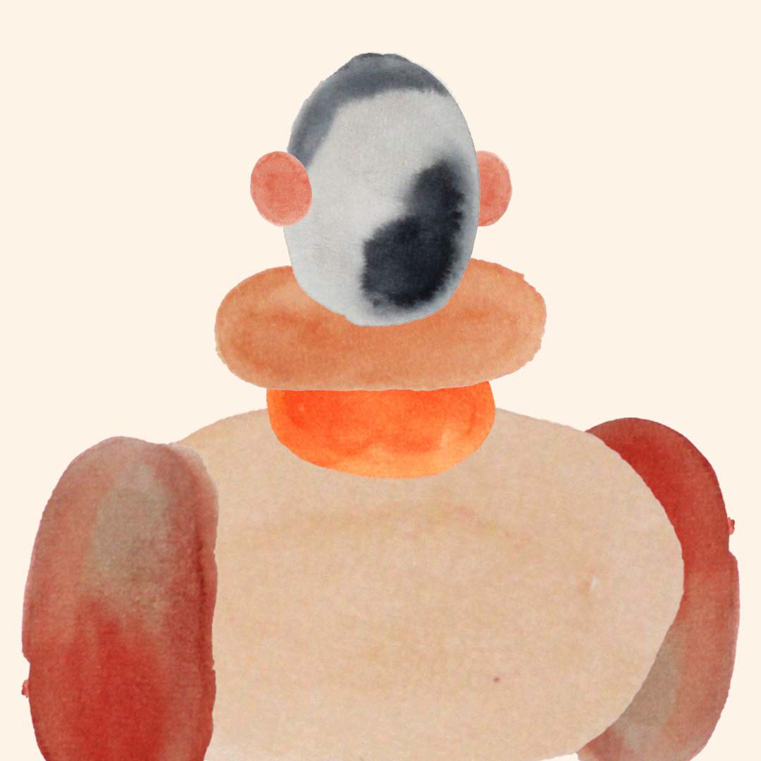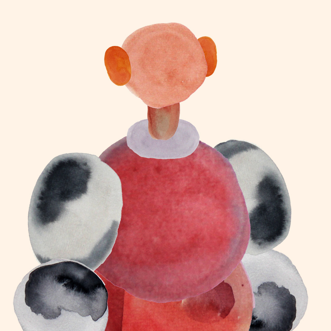 Série de 6 personnages crées à partir de tâches d’aquarelle.