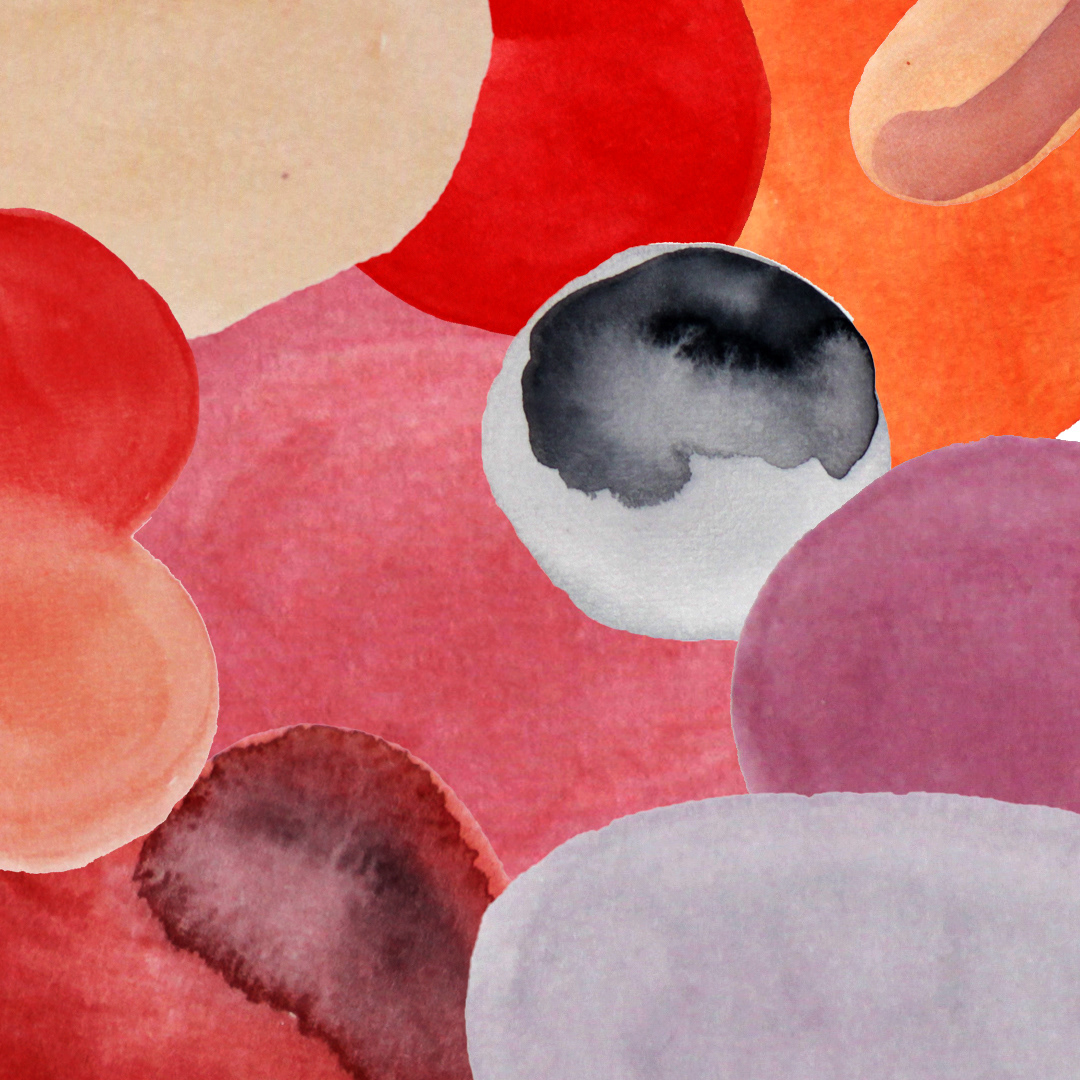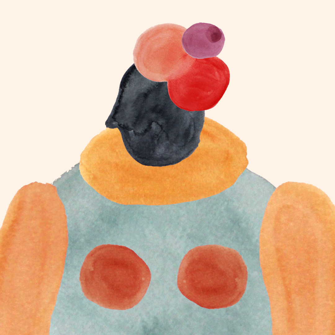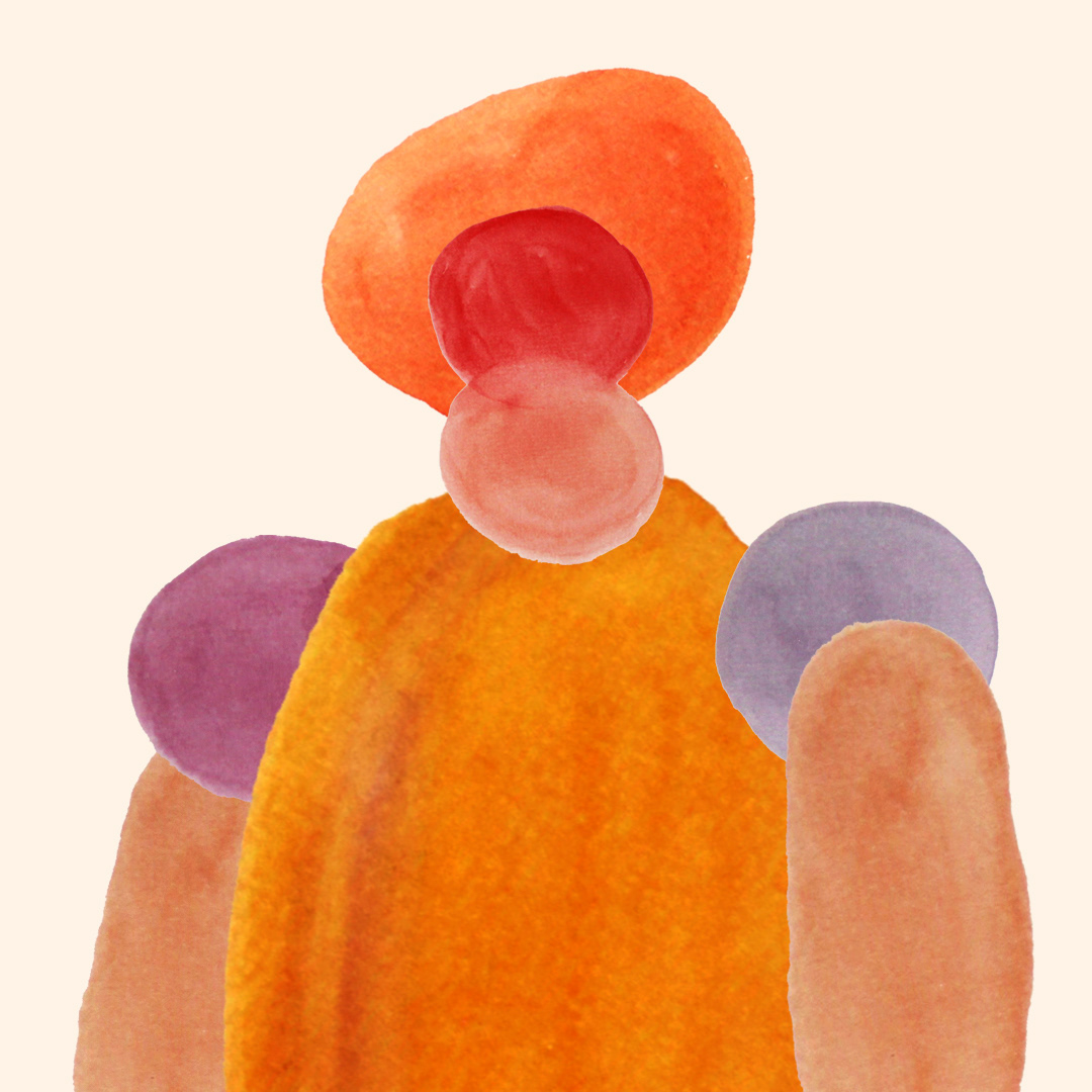 Série de 6 personnages crées à partir de tâches d’aquarelle.